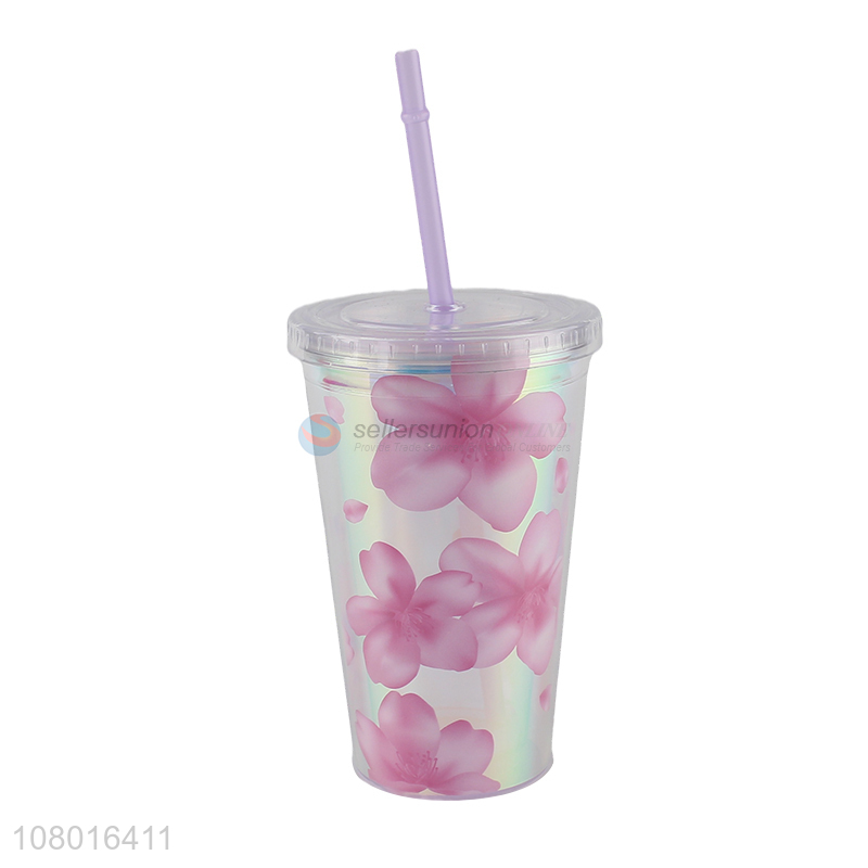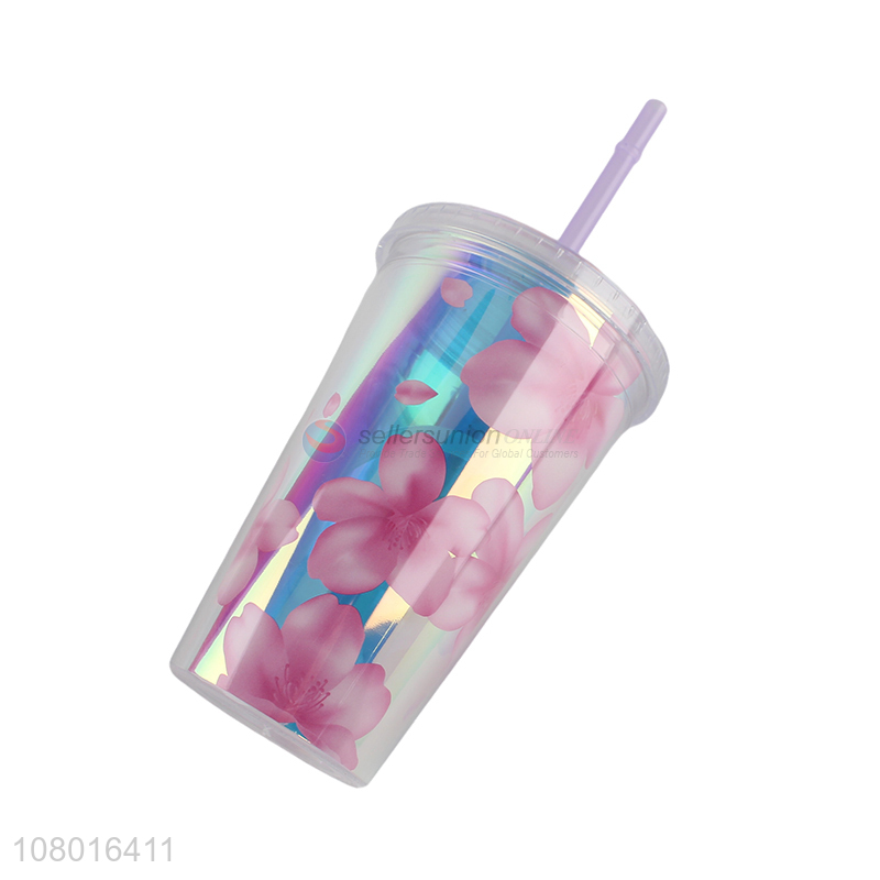 Custom logo fashion cups reusable plastic tumbler with lid and straw