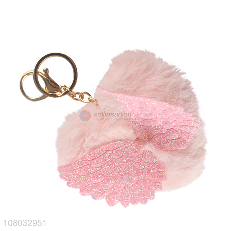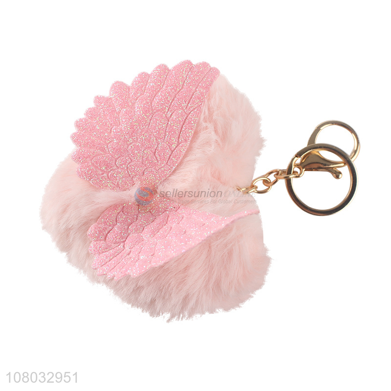 China Yiwu pink peach heart hair ball pendant portable keychain