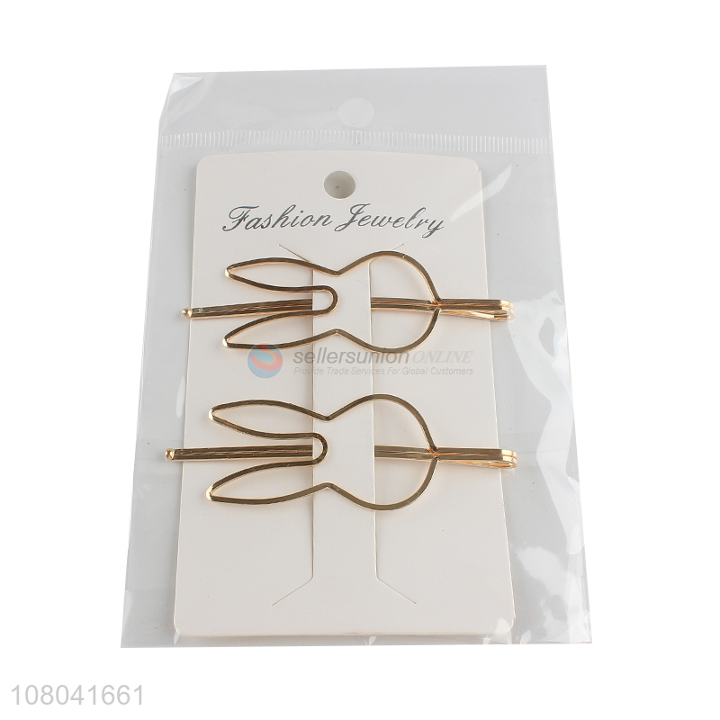Good sale cute rabbit shape golden alloy hairpin wholesale