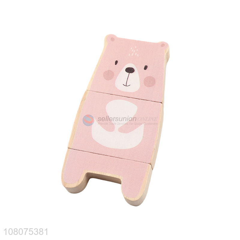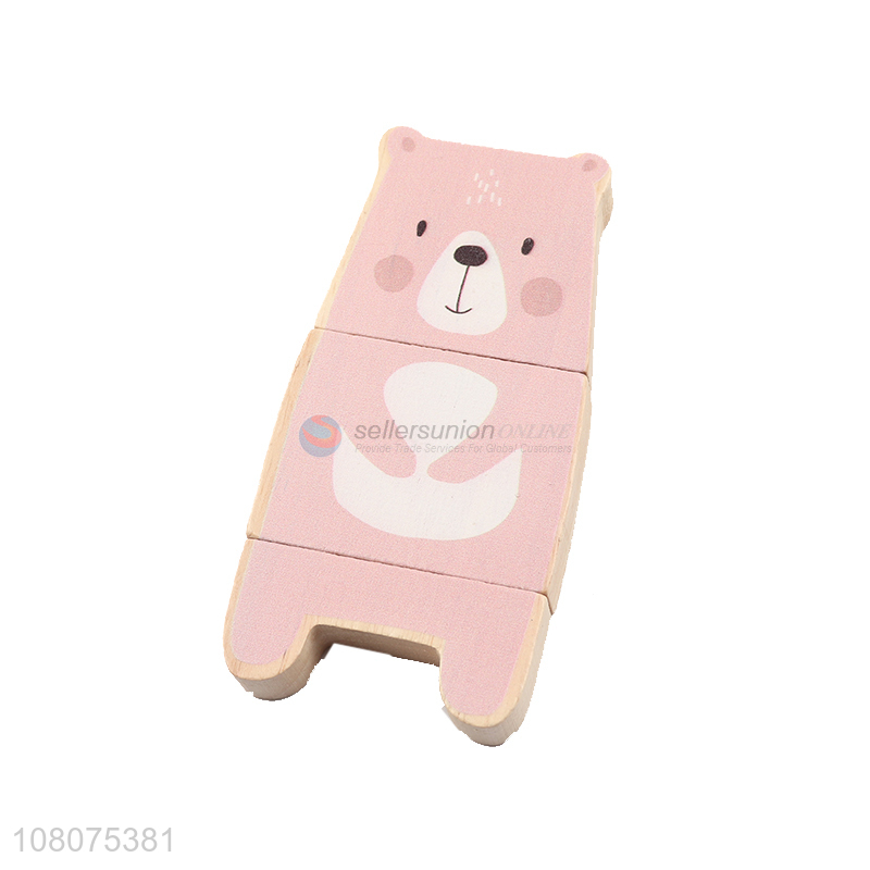 Hot selling pink cartoon bear wooden blocks toy for children