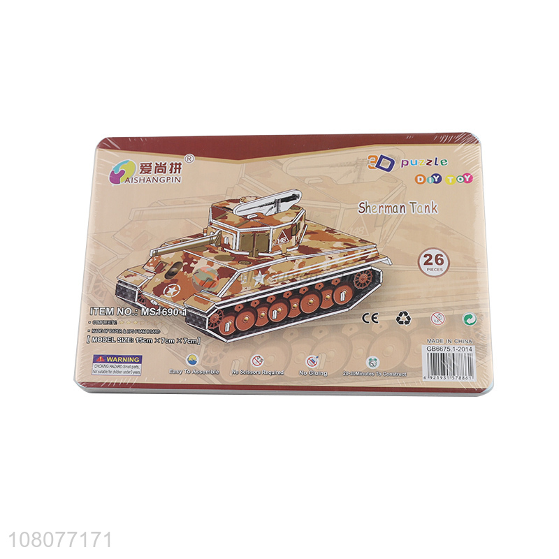 Hot selling 3D sherman tank puzzle children educational puzzle 26 pieces
