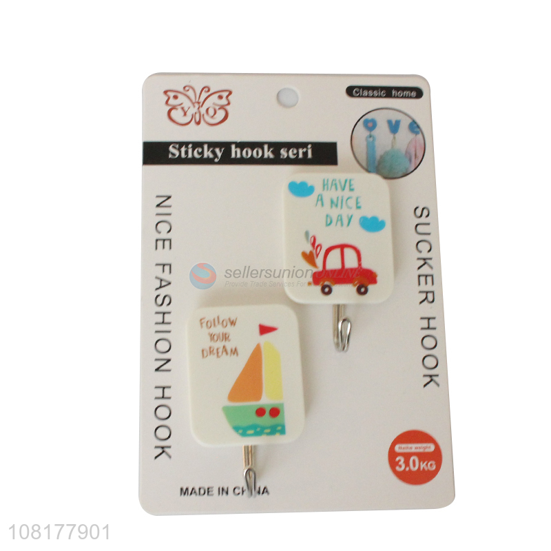 Cheap price cute pattern 2pieces household sticky hooks for sale