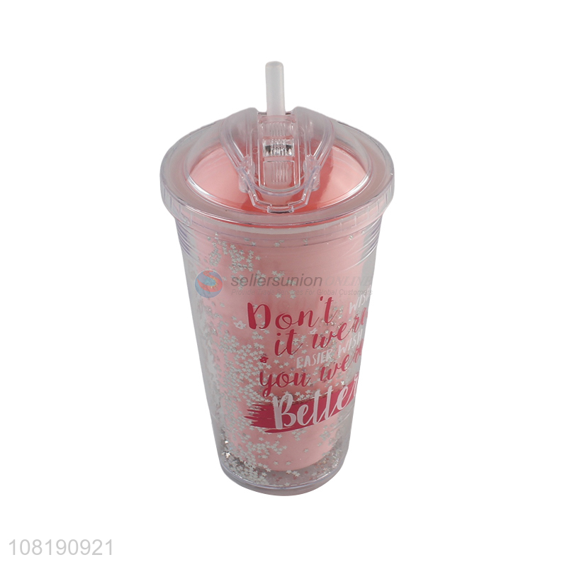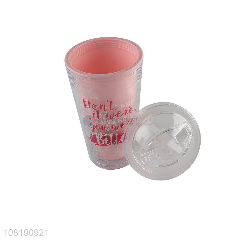 Factory supply double walled reusable leakproof water cup with straw and lid
