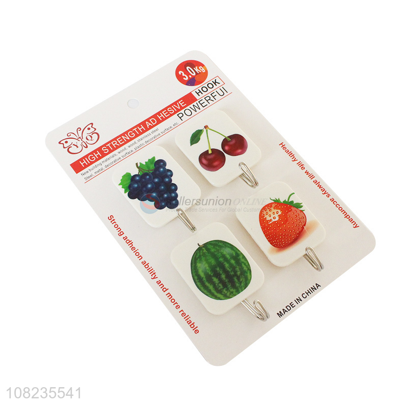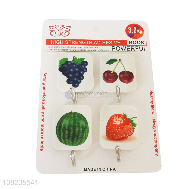 Fashion Fruit Pattern Sticky Hooks 4 Pieces Self Adhesive Hooks