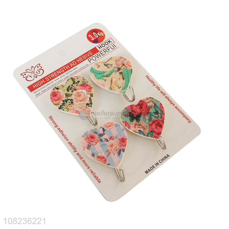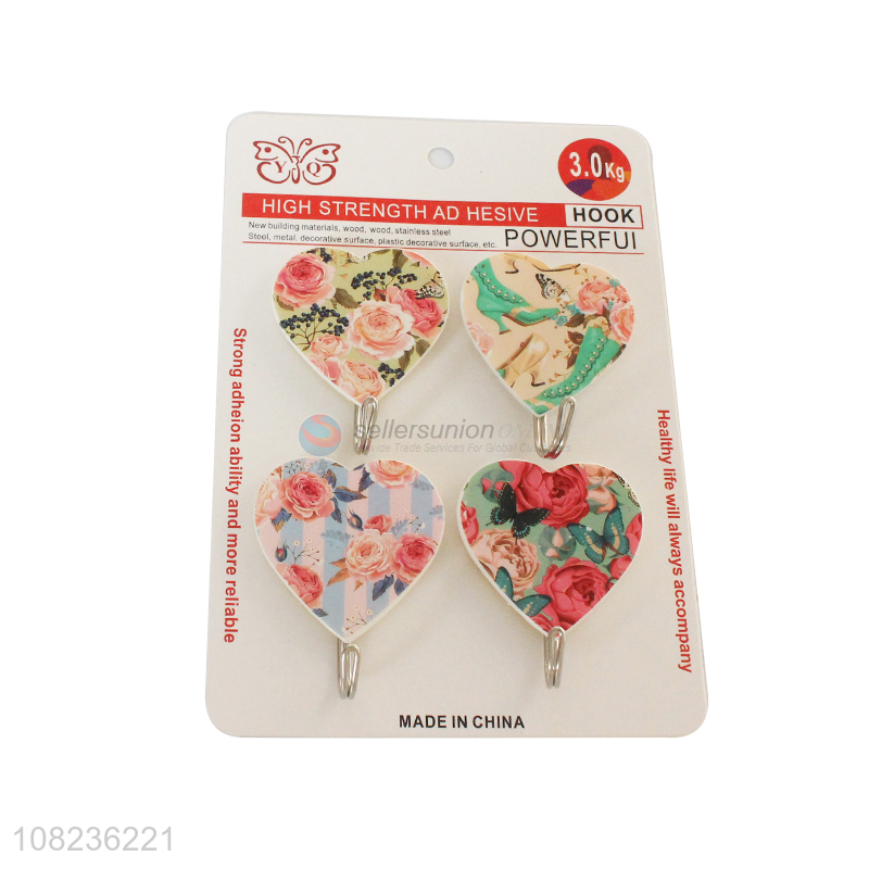 Good Price 4 Pieces Heavy Duty Sticky Hooks Heart Shape Wall Hooks