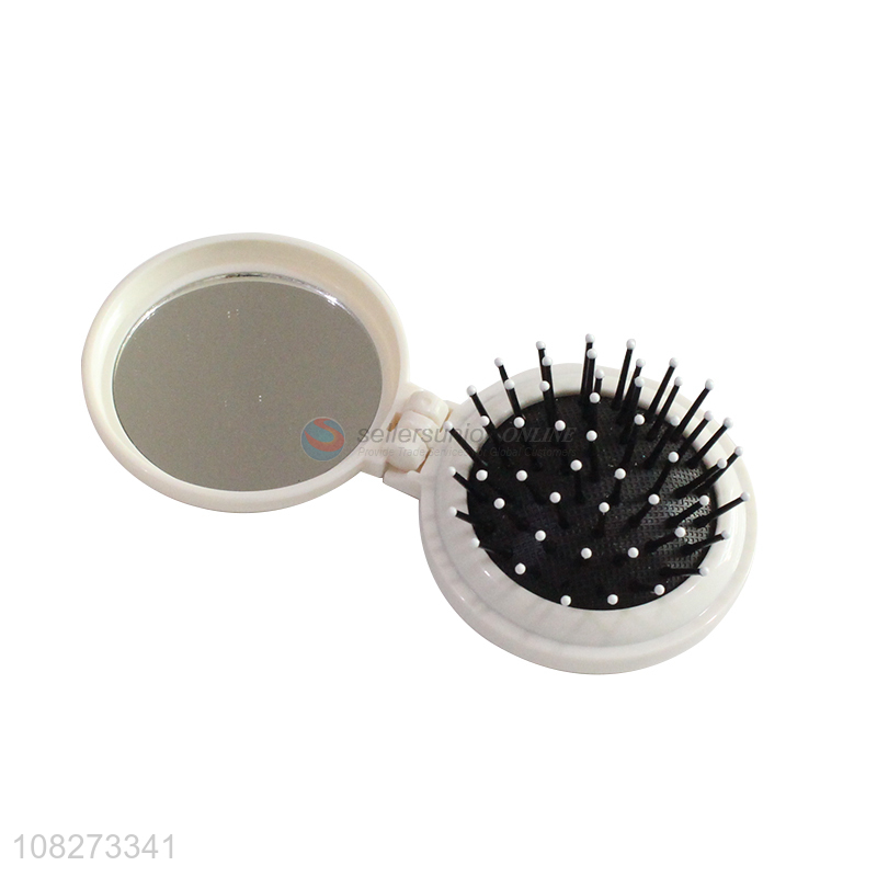 Online wholesale round folding hair comb with mirror