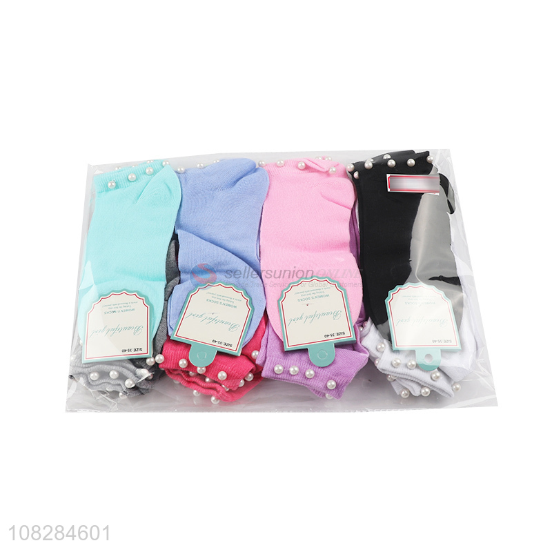 New design spring summer fashion pearly women ankle socks