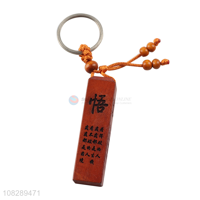 Top sale wood carved pendant keychain key ring for crafts
