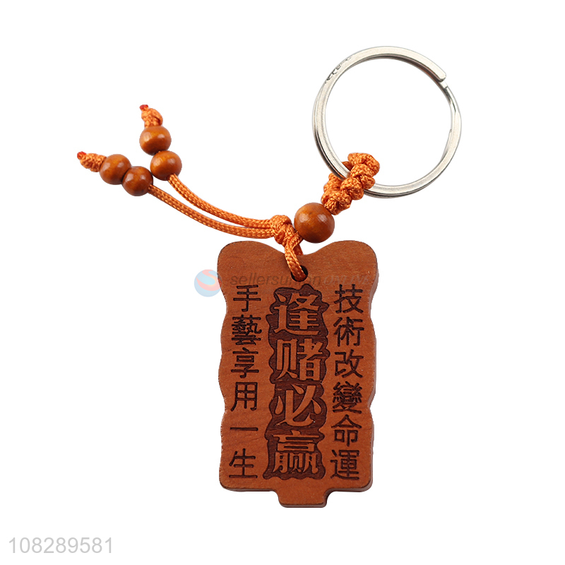 China factory handmade wood carved diy crafts keychain for sale