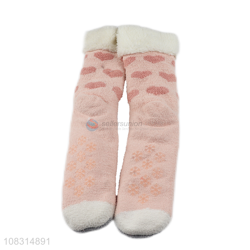 Hot selling ladies floor socks winter fleece home slippers socks