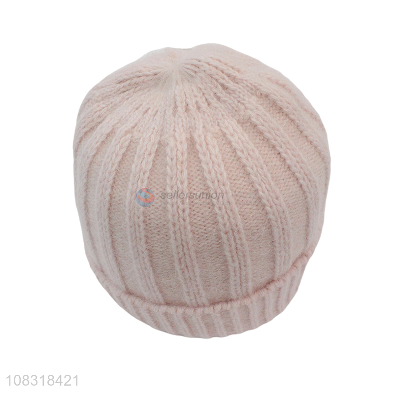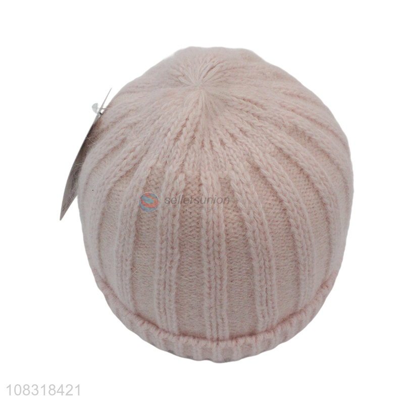Factory price girls fashion rabbit fur hat striped knitted hat