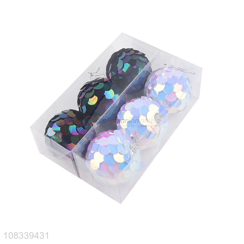 Hot Selling 3 Pieces Sequins Christmas Ball Christmas Ornaments