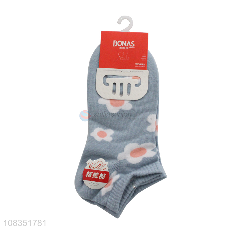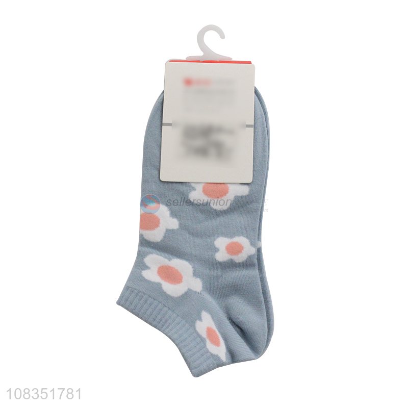 Best selling trendy flower pattern boat socks for women girls