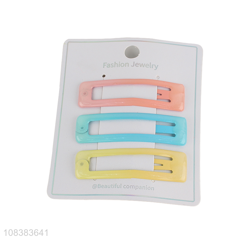 Hot selling 3 pieces epoxy snap hair clips fashion metal hair barrettes