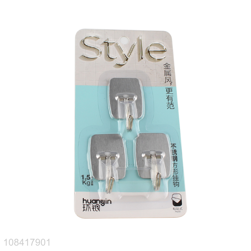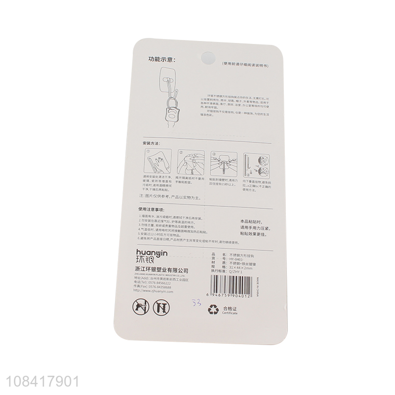 Yiwu supplier household stainless steel square sticky hooks