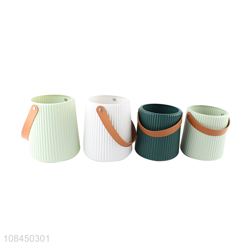 New products home decoration trendy plastic flower vase pot with handle