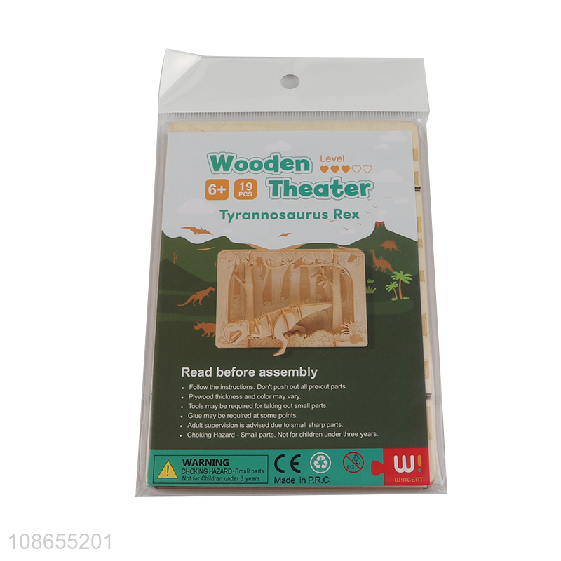 Factory supply children wooden theater tyrannosaurus rex 3d puzzle toy for sale