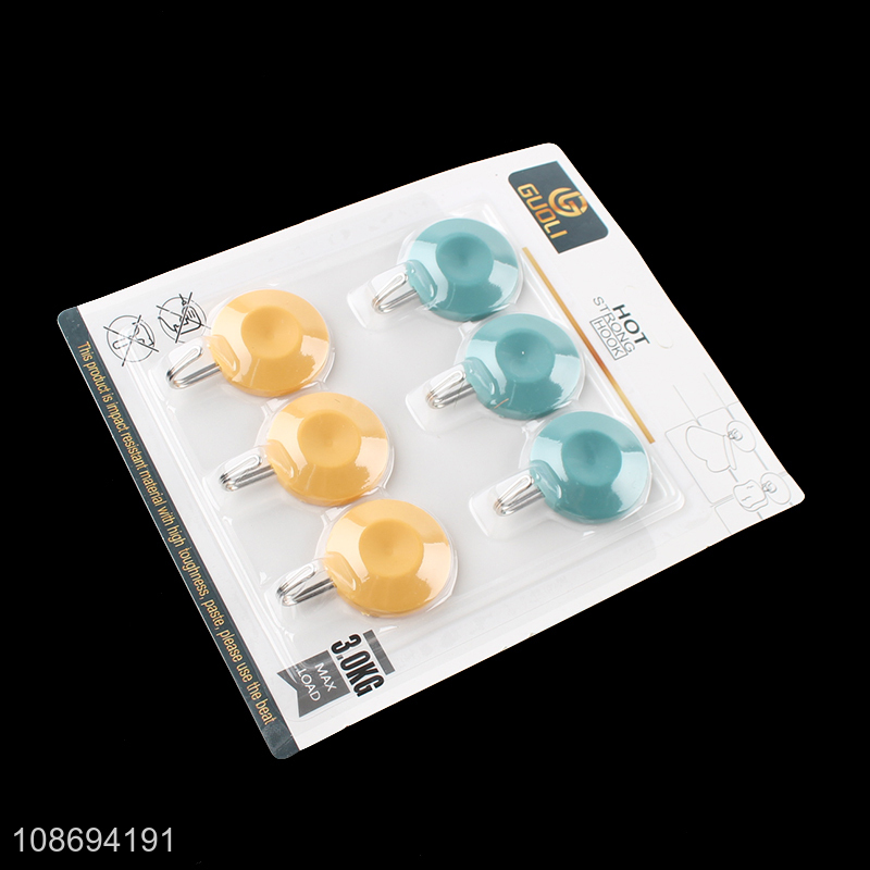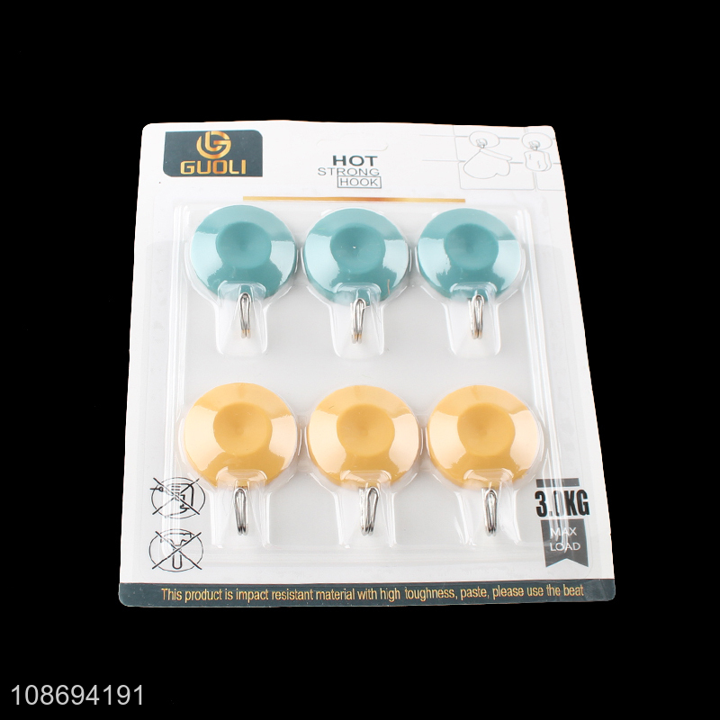 Hot selling 6pcs traceless plastic sticky hooks bathroom towel hooks