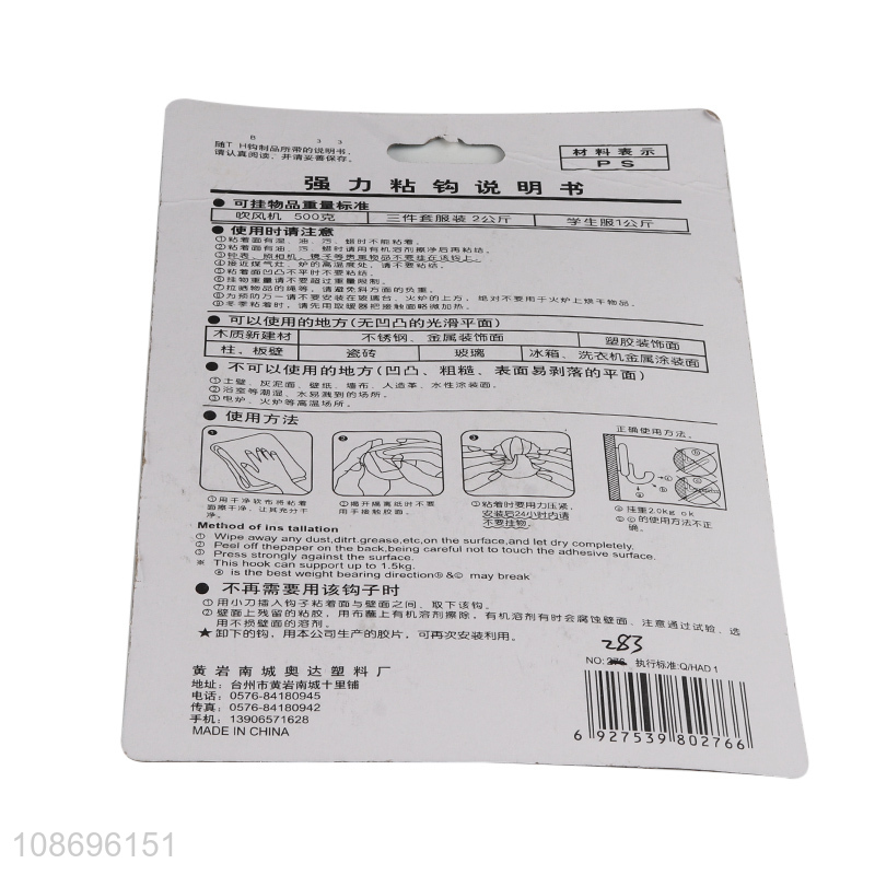 China imports 3pcs wall hanging hooks adhesive hooks sticky hooks