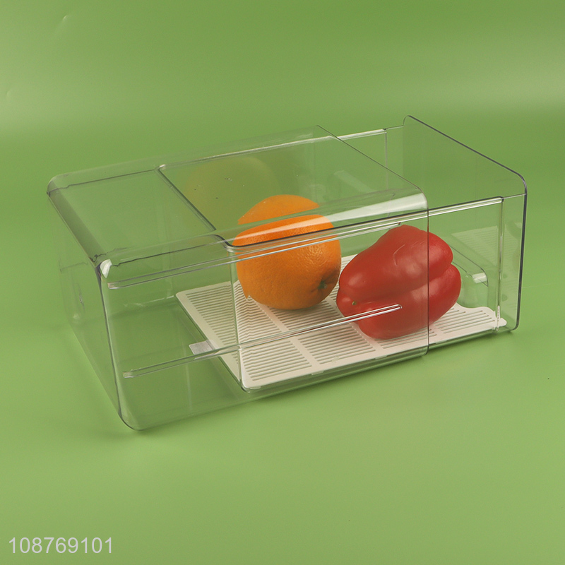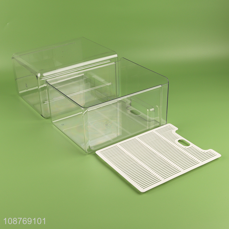 Factory price plastic refrigerator organizer bins with drain tray