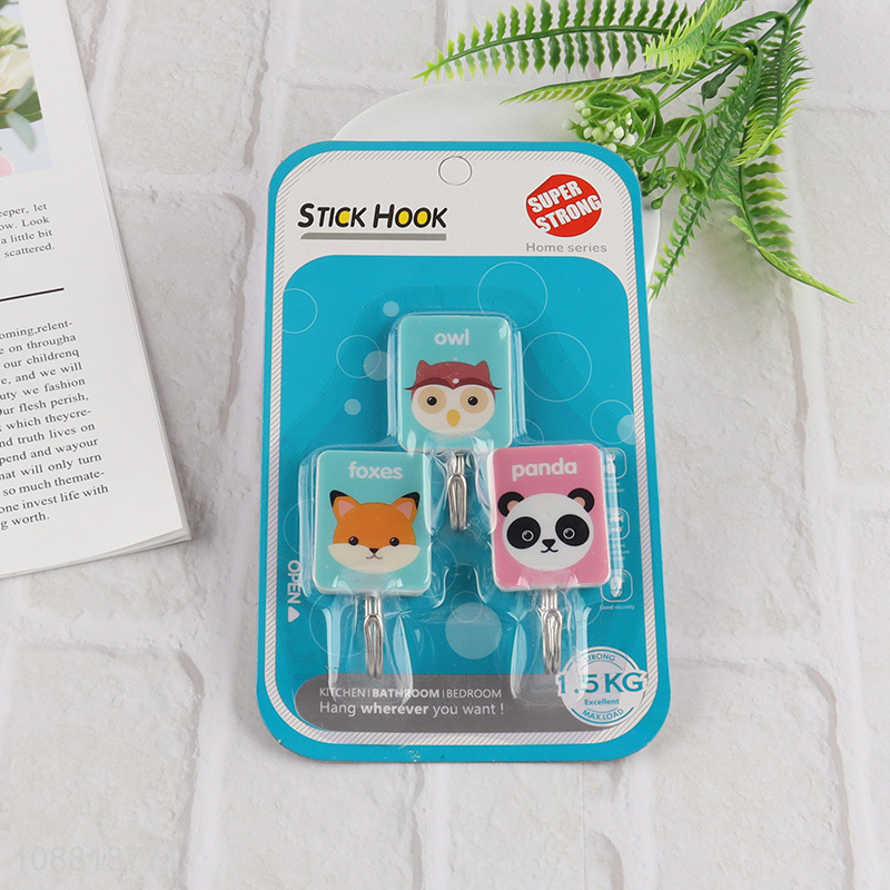 Factory price 3pcs cartoon animal printed sticky hook for bathroom