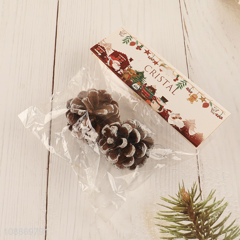 Good quality 2pcs artificial pine cone festival hanging ornaments