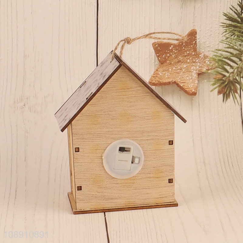Wholesale Led Light Wooden House Ornament Xmas Tree Hanging Decorations