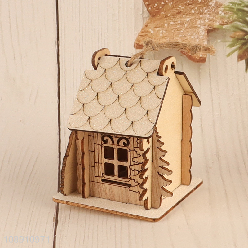 Wholesale Led Christmas Wooden House Christmas Tree Hanging Ornaments