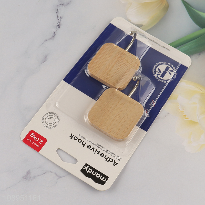 New Product 2PCS Square Bamboo Sticky Hooks for Hanging Keys Caps