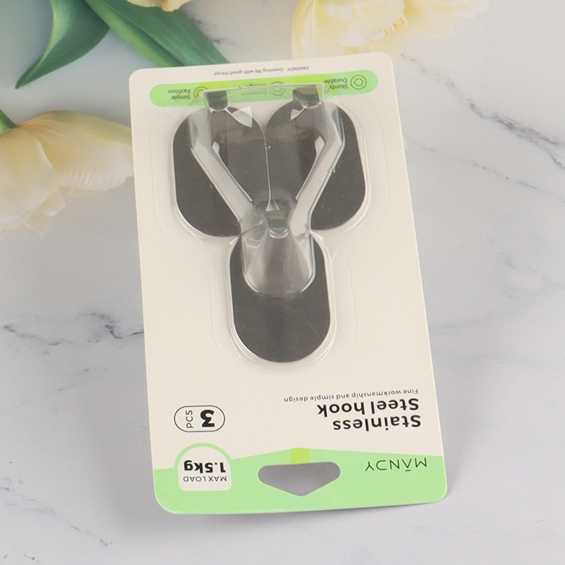 Online Wholesale 3PCS Stainless Steel Adhesive Wall Hooks Kitchen Towel Hooks