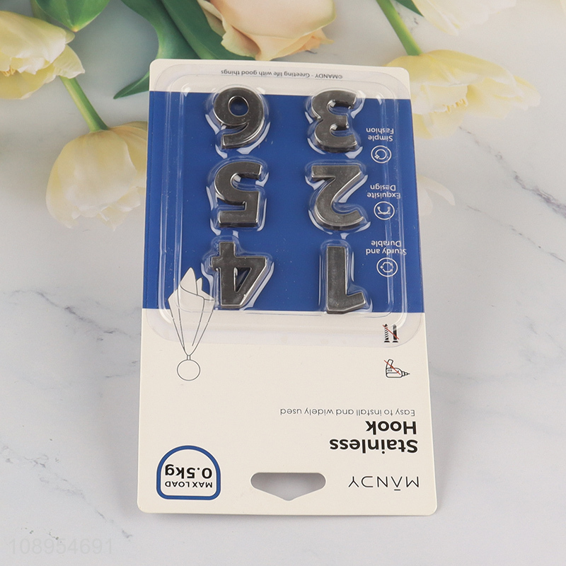 Hot Selling 6PCS Number Shaped Adhesive Hooks Heavy Duty Utility Hooks