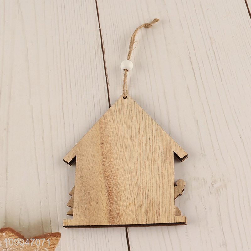Top quality house shape wooden Christmas hanging ornaments decoration for sale