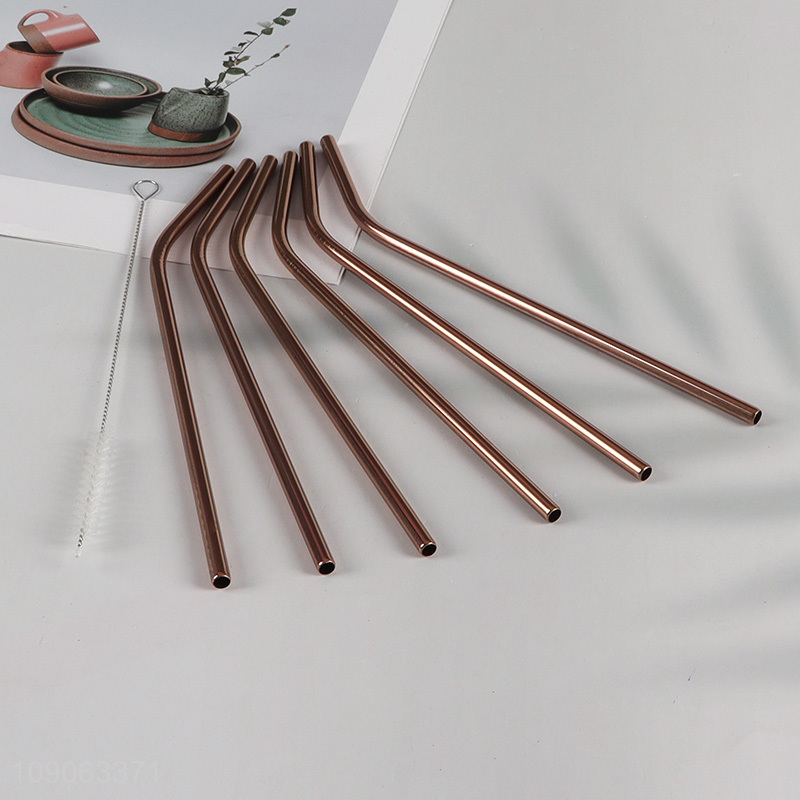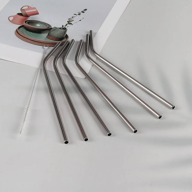 Wholesale 6 Pack Stainless Steel Drinking Straws Bent Straws with 1 Straw Brush