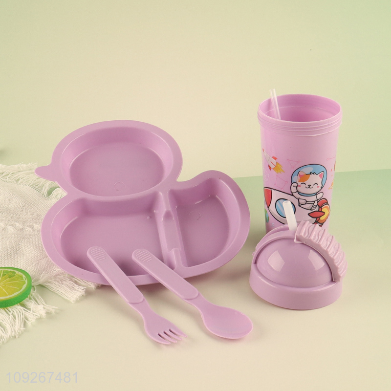 Yiwu market plastic duck shape dinner plate kids water bottle set