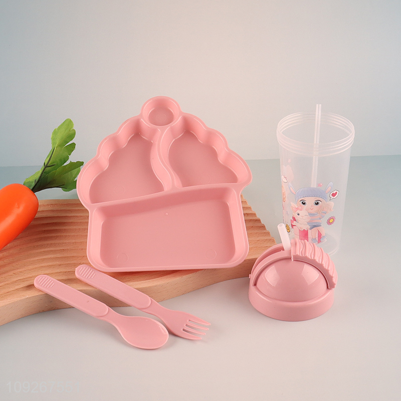 Factory wholesale house shape plastic children dinner plate with straw cup