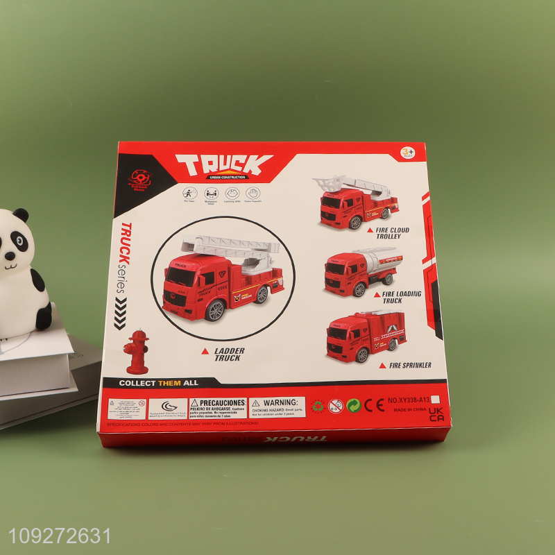 Online wholesale fire fighting truck children's toy pull back car set for gifts