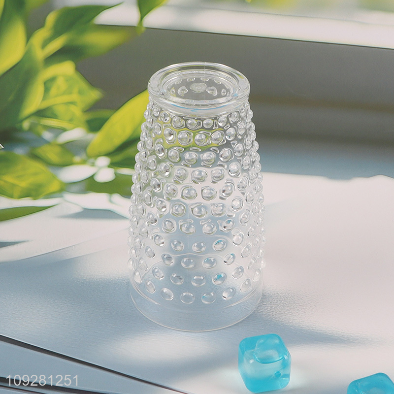 Yiwu market clear glass embossed water cup drinking cup
